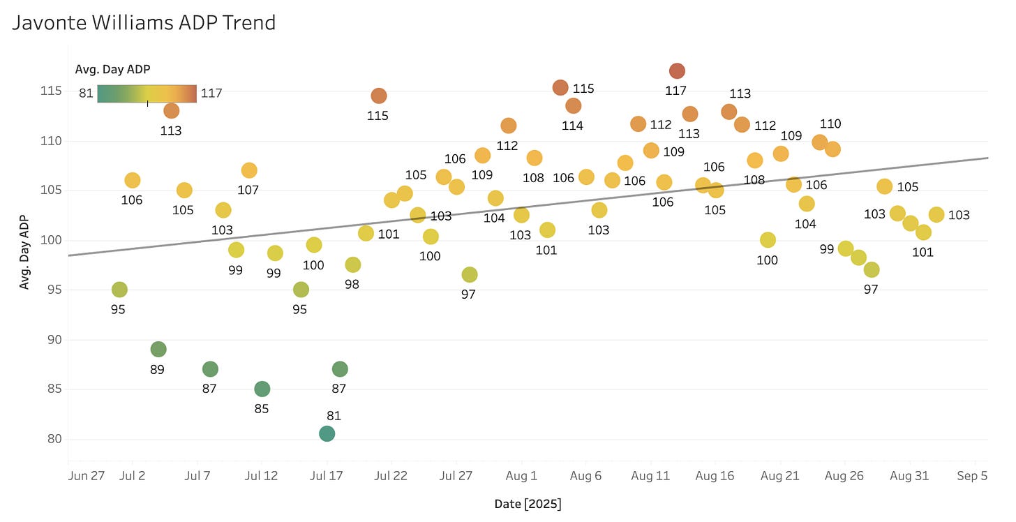 Role is everything, and this Cowboys offense is a good one to be a part of. Williams is looking like a super steal with his triple-digit ADP.