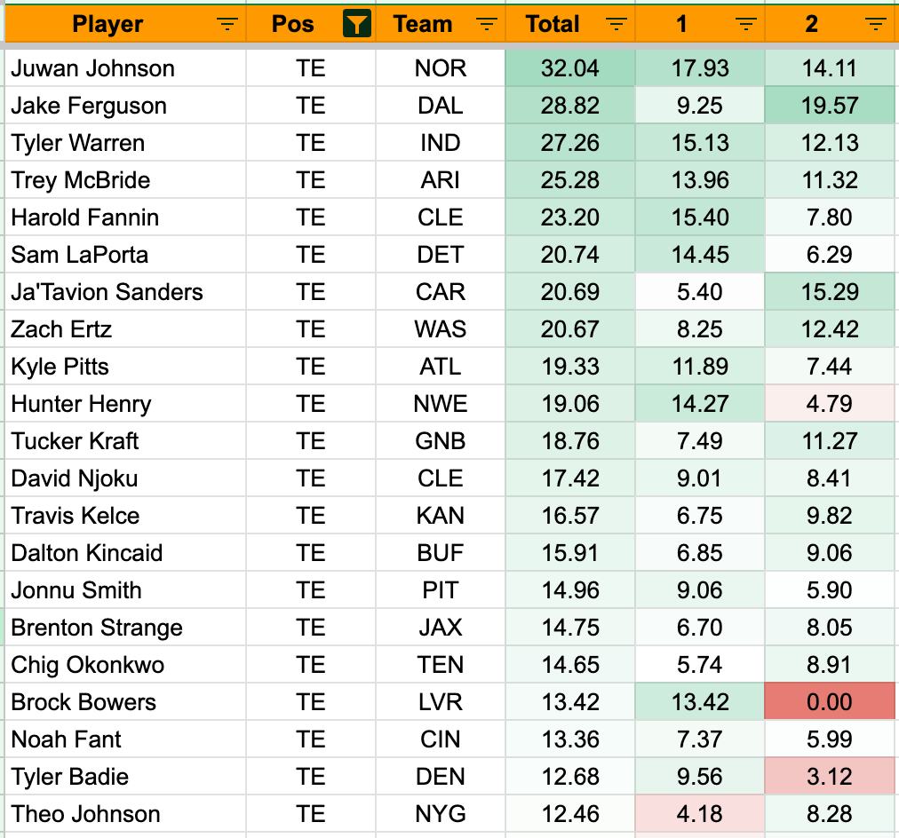Those two both now rank in the top seven in TE xFP (although this data was prior to the MNF double header).